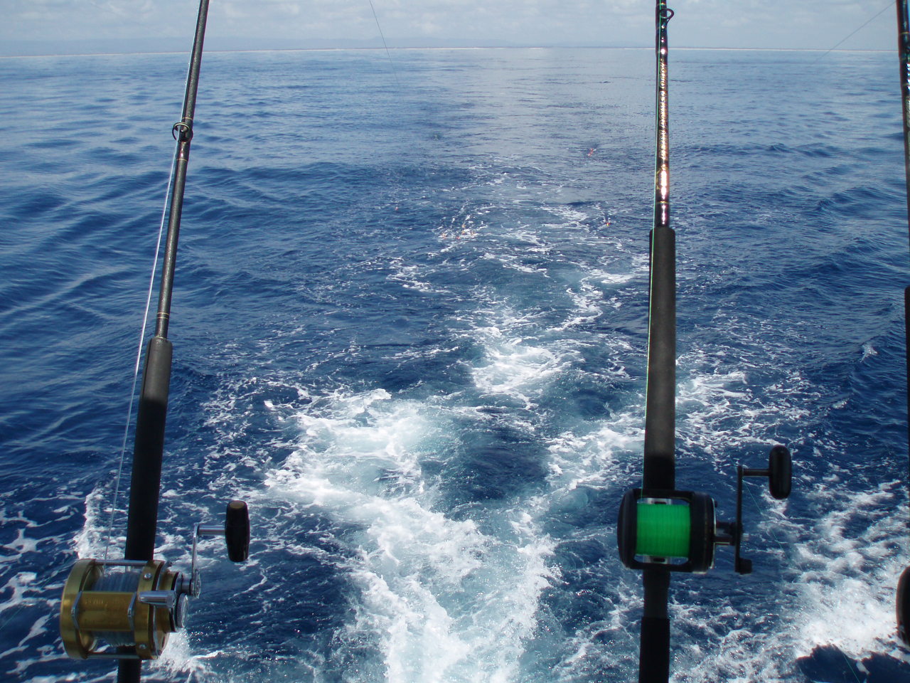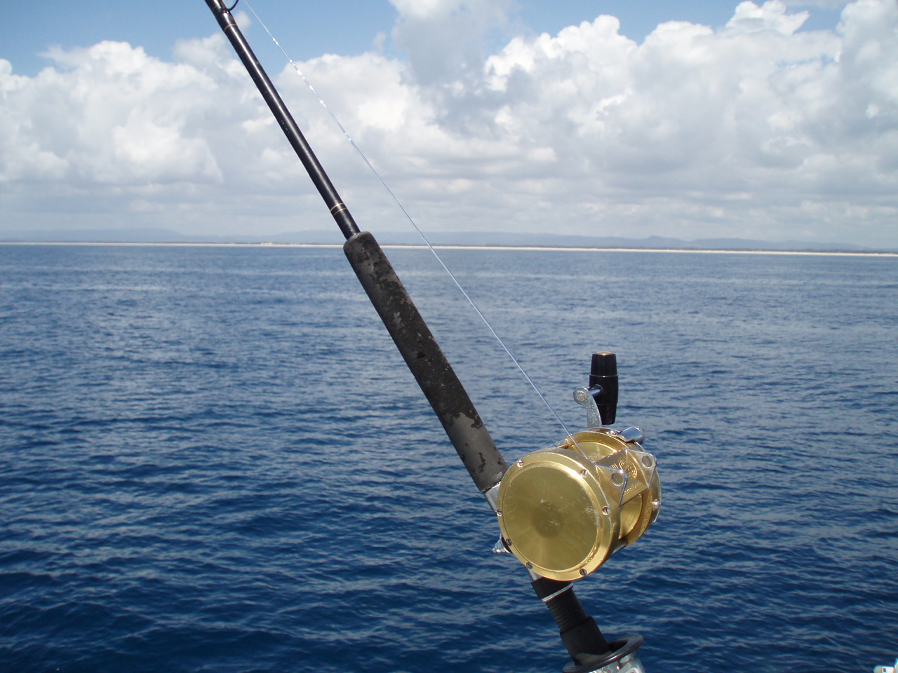 fishing in the Coral Sea south of Brisbane. Sunny morning. Rainy afternoon. No bites.