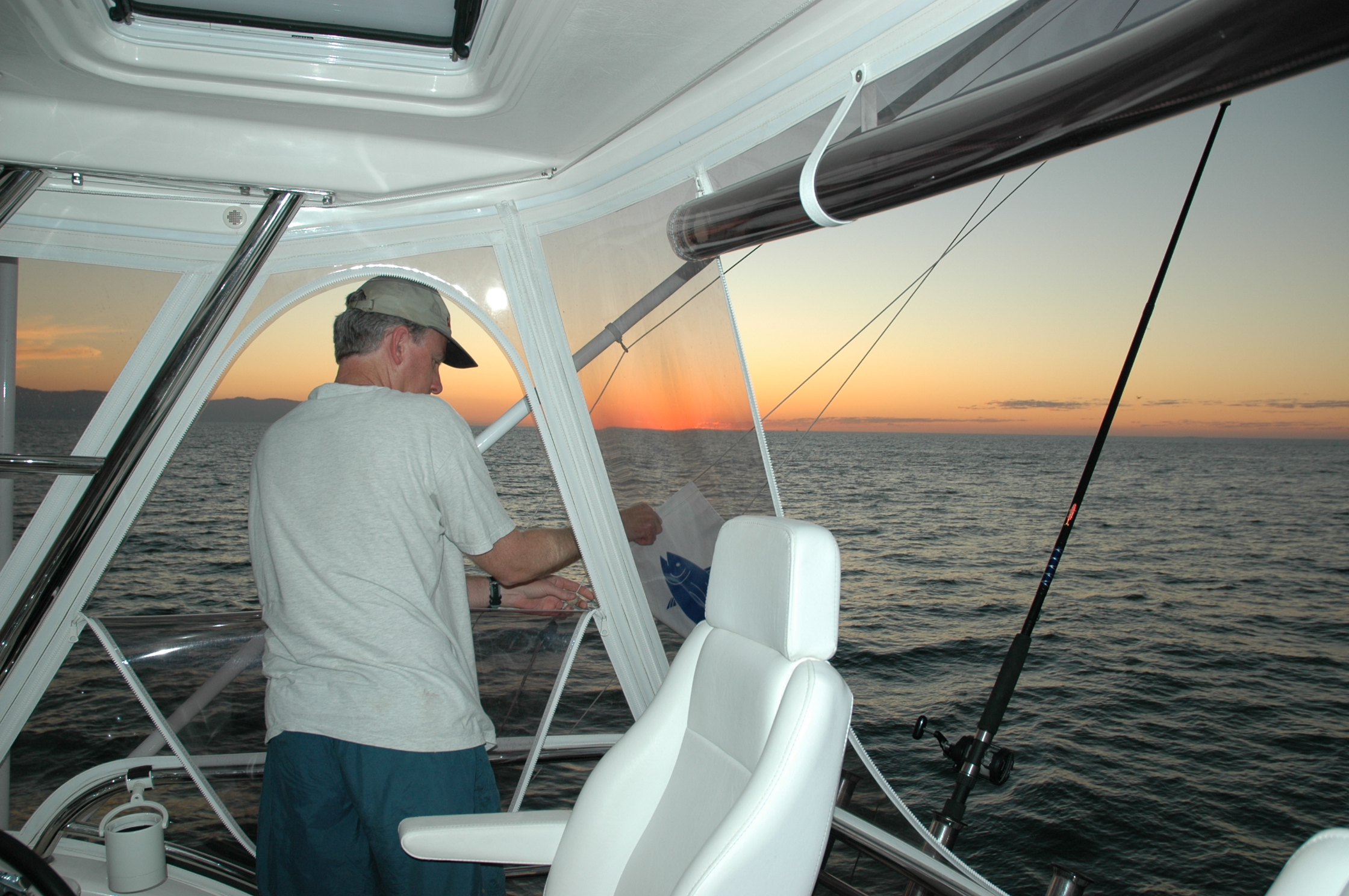 7/29- Fishing Corbetena Rock with Kevin, Tony & KJ. We caught our first "vacona" only one month after arriving in PV. It taped out at 278 pounds.
