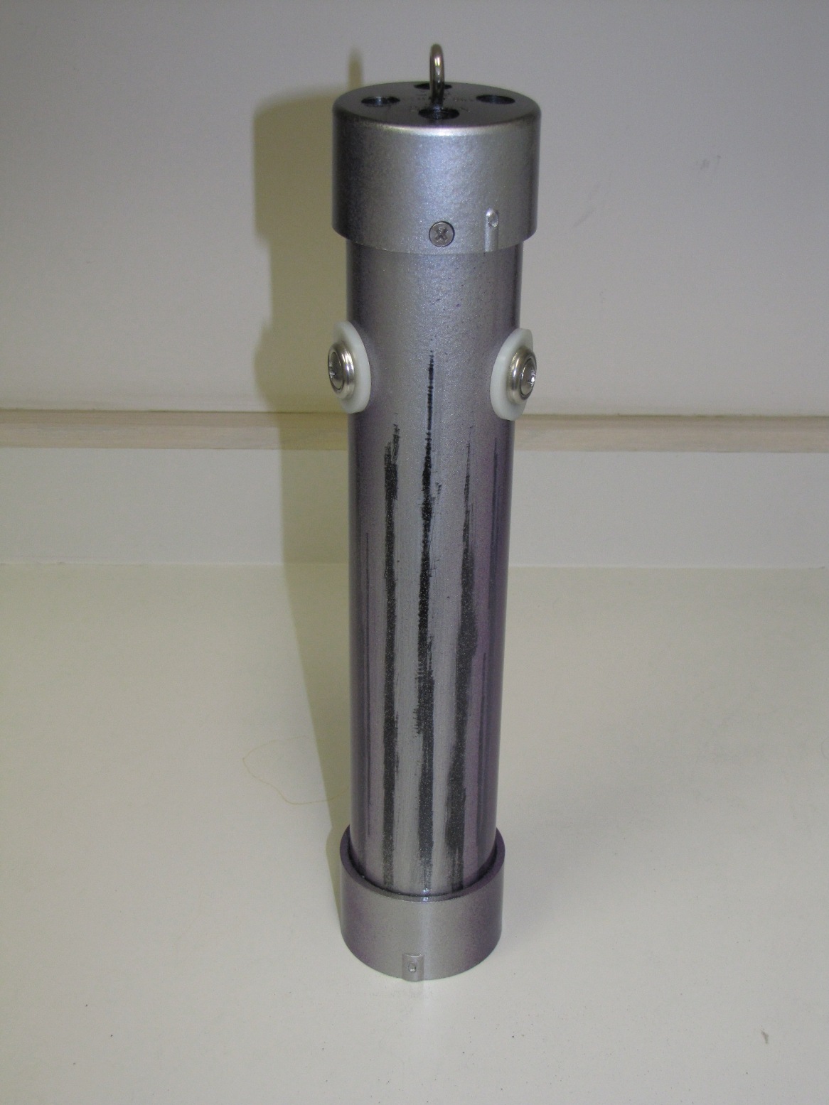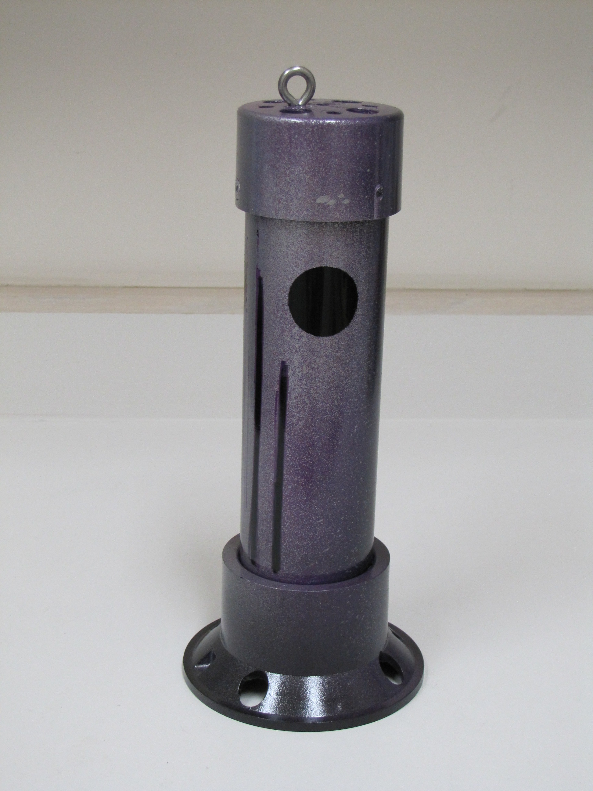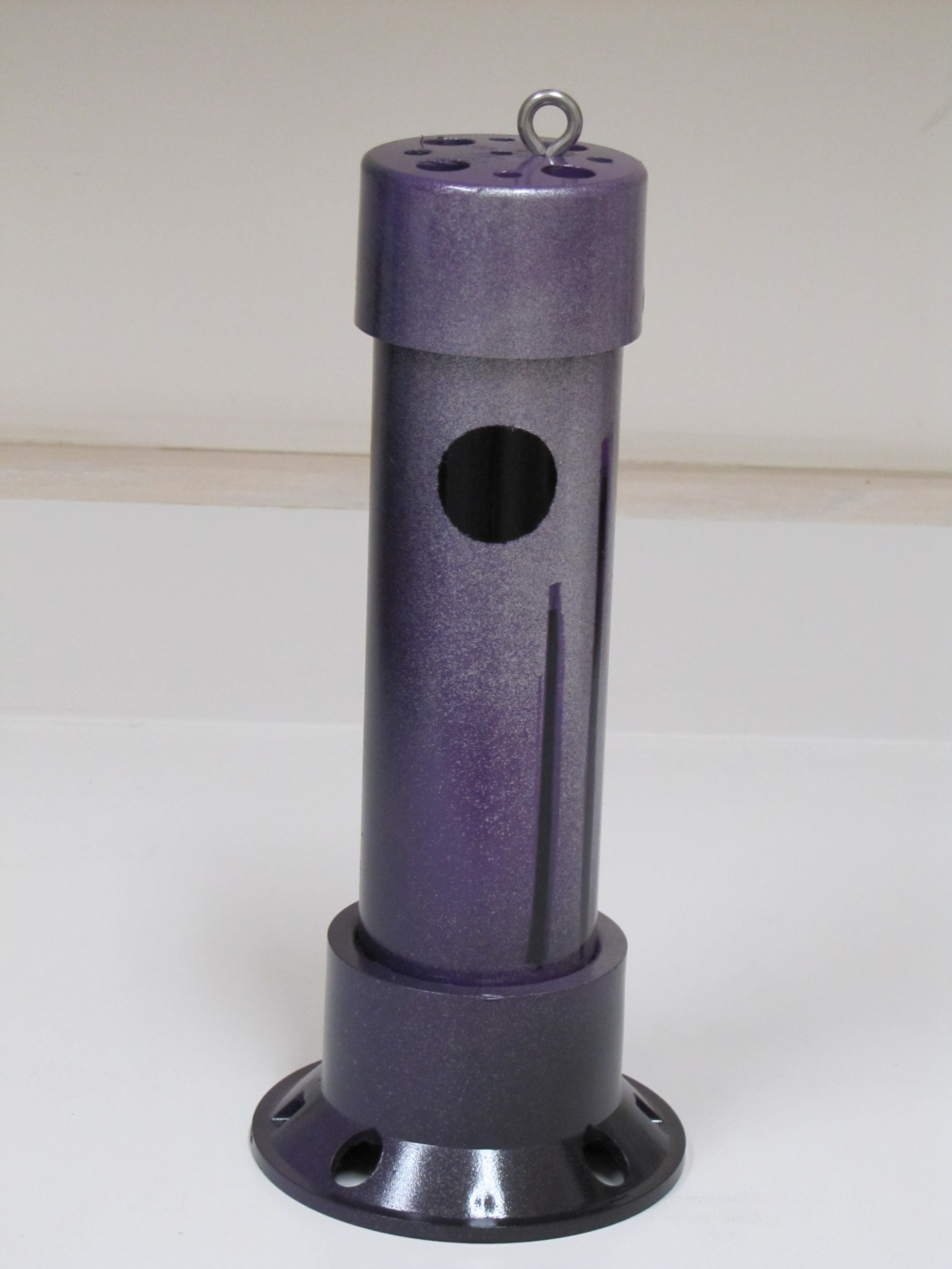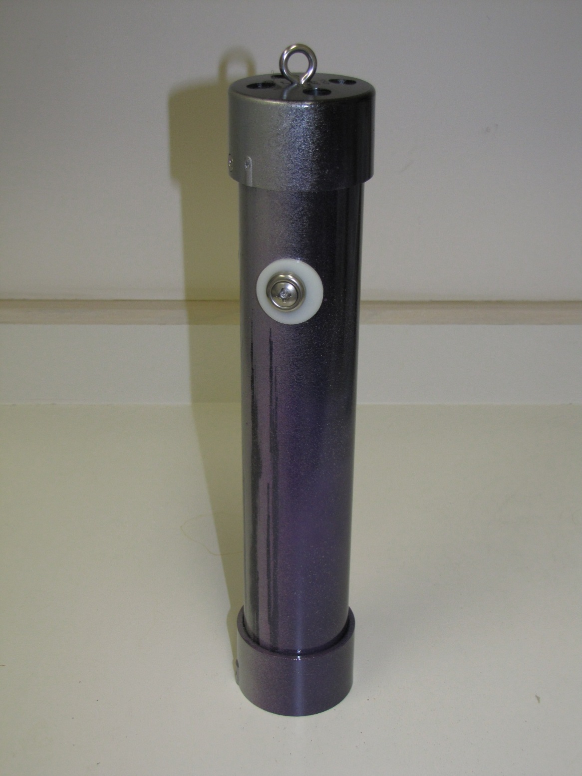 INSTRUCTIONS: Cut pipe to desired length. This one is a 12"pipe and an overall length of about 14" . Drill four 1/2 inch holes in the large drain "tail" to make smoke. Insert the small drain piece in the bottom (no glue) and then attach the large floor drain "tail" with PVC glue. This piece comes with a stainless steel bottom plate that you can leave or remove. You can use a rounded (white) or flat (black) cap for the front end. Drill four 1/2" holes in the cap plus a 1/8" hole dead center for the stainless steel eye bolt. Mount the eye bolt with a flat and lock washer. Use a set screw on the front cap rather than glue so that you can remove the cap and play with the number of marbles inside. I start with five and it really rattles. Drill a small hole for the set screw when the cap is tightly in place. I use a counter-sink on the set screw hole so it is flush. I mounted a little weight in the bottom of the tail to help it run in the correct vertical position (not shown in these photos). Personally, I do not mind it turning because it looks like the fish is panicking or hurt.