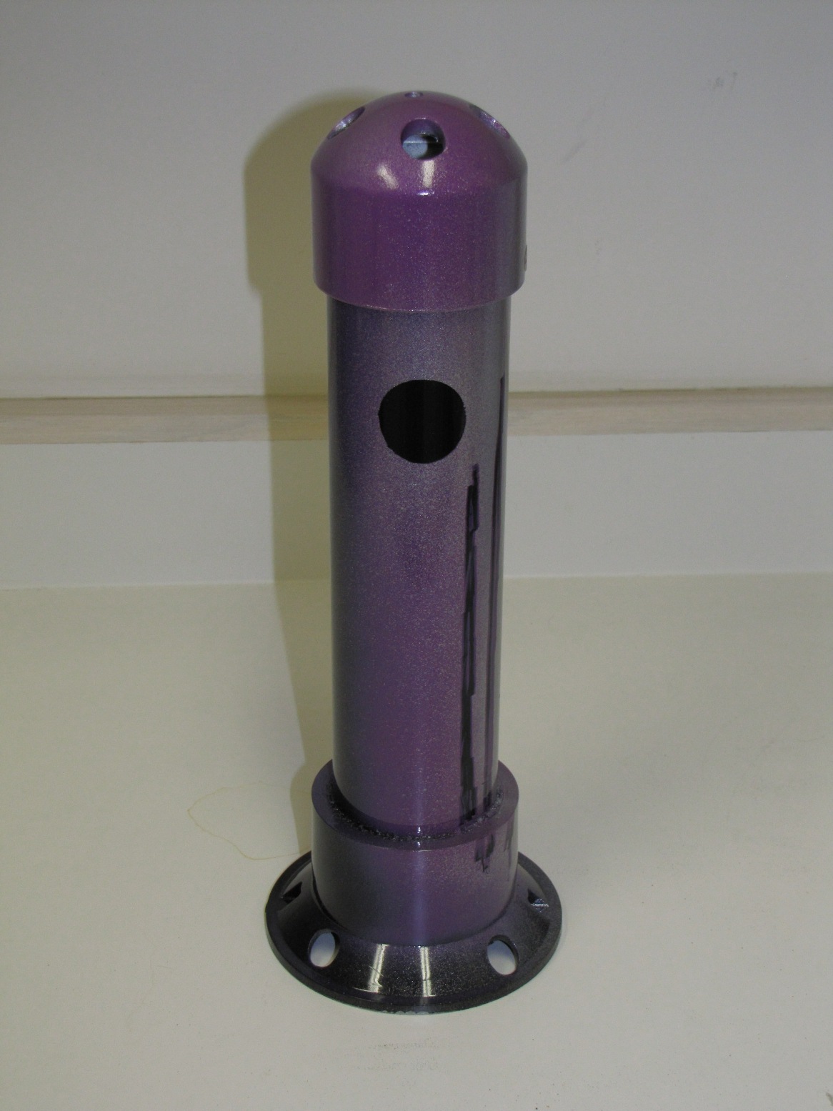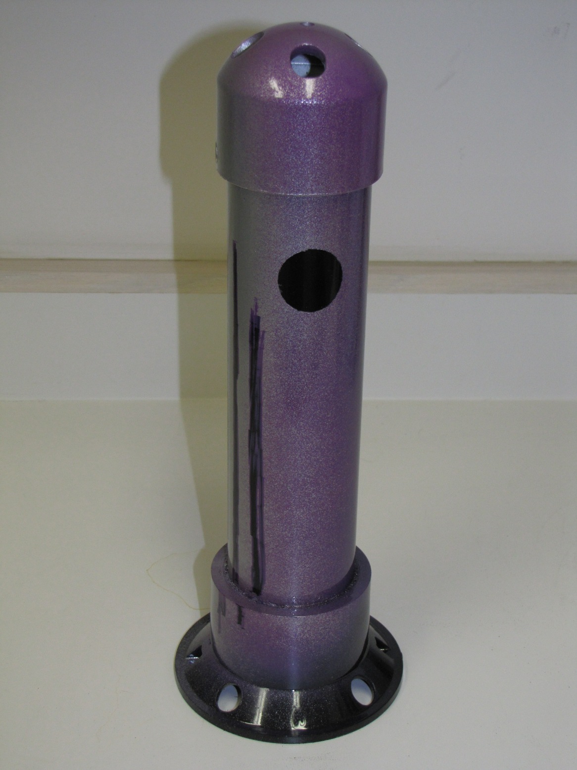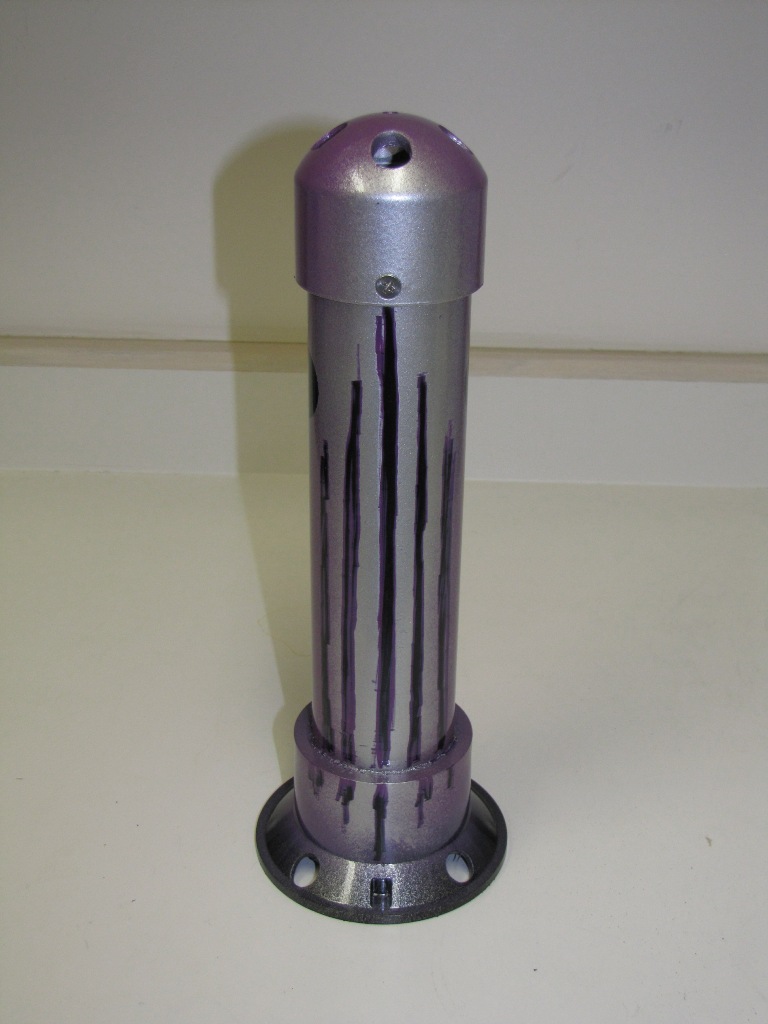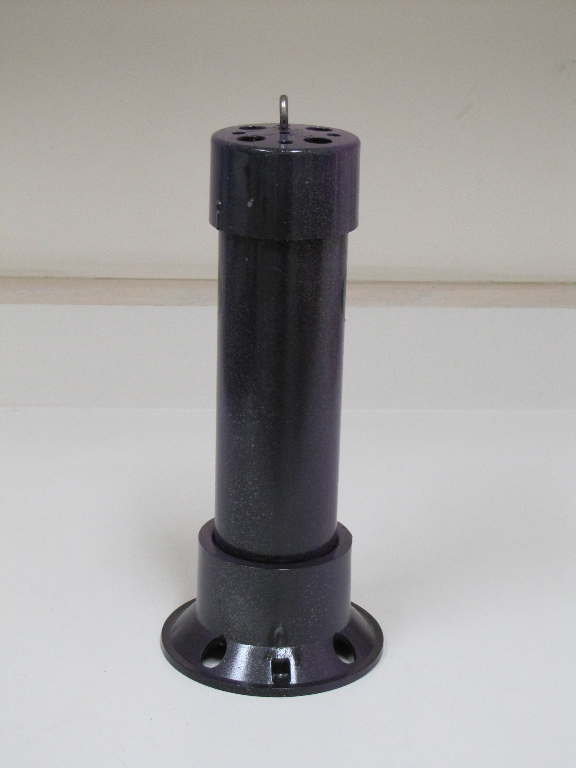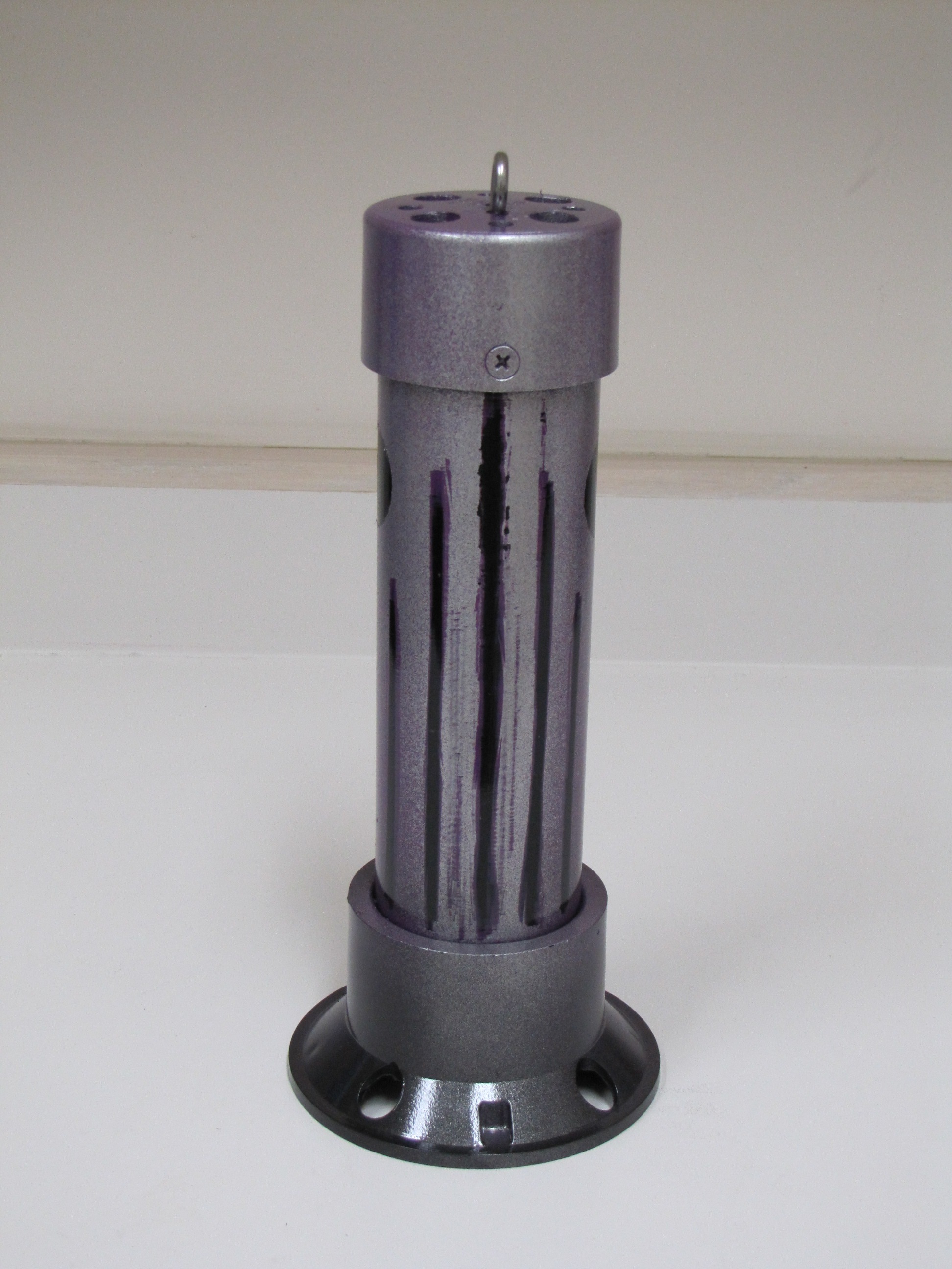 INSTRUCTIONS: Cut pipe to desired length. This one is a 12"pipe and an overall length of about 14" . Drill four 1/2 inch holes in the large drain "tail" to make smoke. Insert the small drain piece in the bottom (no glue) and then attach the large floor drain "tail" with PVC glue. This piece comes with a stainless steel bottom plate that you can leave or remove. You can use a rounded (white) or flat (black) cap for the front end. Drill four 1/2" holes in the cap plus a 1/8" hole dead center for the stainless steel eye bolt. Mount the eye bolt with a flat and lock washer. Use a set screw on the front cap rather than glue so that you can remove the cap and play with the number of marbles inside. I start with five and it really rattles. Drill a small hole for the set screw when the cap is tightly in place. I use a counter-sink on the set screw hole so it is flush. I mounted a little weight in the bottom of the tail to help it run in the correct vertical position (not shown in these photos). Personally, I do not mind it turning because it looks like the fish is panicking or hurt.